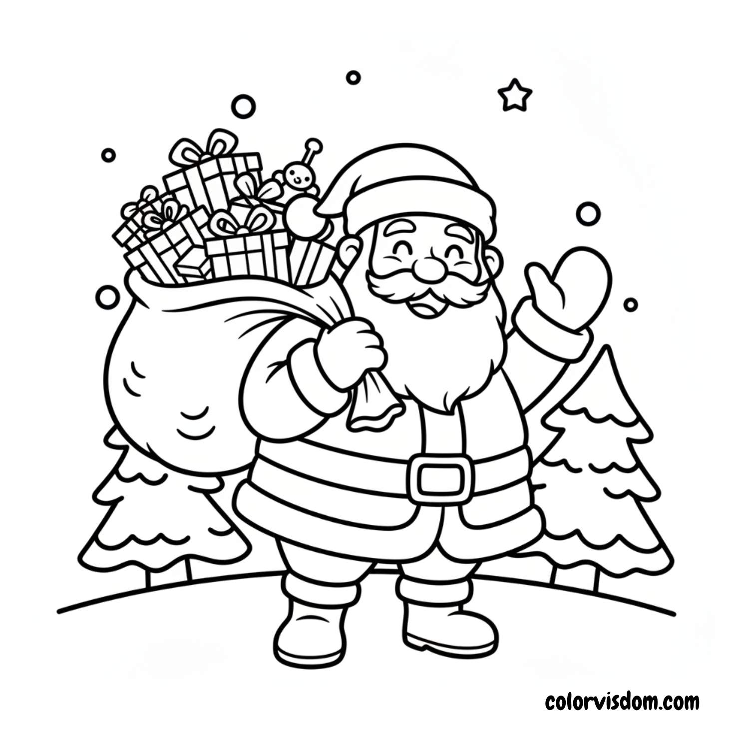 Santa Claus Coloring Page for kids to enjoy Christmas fun. Download free printable Santa Claus Coloring Pages for easy and joyful coloring.